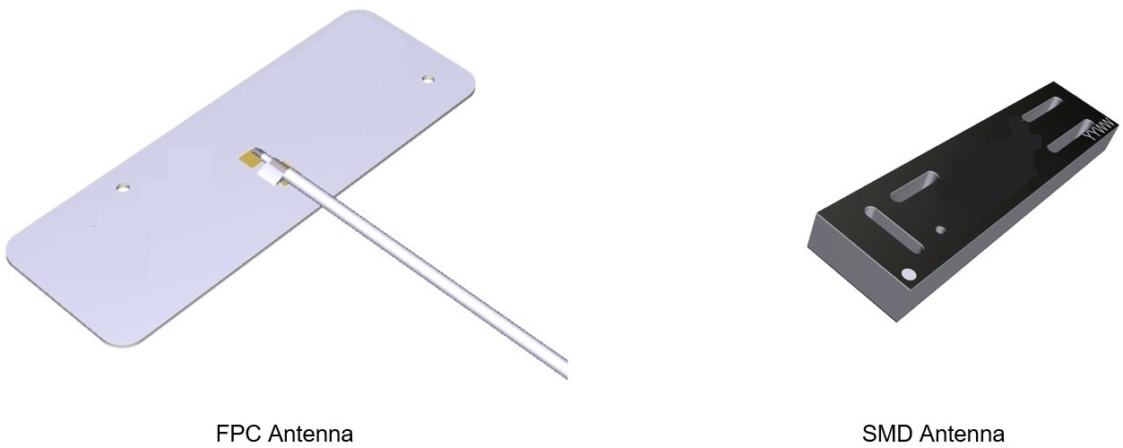 表面安裝設(shè)備(SMD)天線在設(shè)計中是有用的,因為它們只占用很小的空間,但也有其他的選擇。天線是以靈活印刷電路(FPC)形式提供的,這為某些情況下的設(shè)計提供了一個有用的選擇。圖5顯示了SMD和FPC天線。