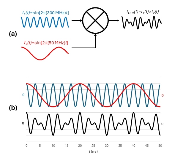 圖3混合器(a)乘以兩個(gè)輸入來(lái)產(chǎn)生一個(gè)輸出(b)。