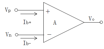 運(yùn)算放大器要求盡可能寬的共模輸入電壓范圍,而且都是直接耦合的,不可能在芯片上集成提供偏置電流的電流源。所以都設(shè)計(jì)成基極開路的,由外電路提供電流。此電流保證輸入晶體管正常工作,兩端口分別為Ib+、Ib-,如下圖。一般輸入偏置電流為兩端口的均值,即:Ib=(Ib+ + Ib-)/2。