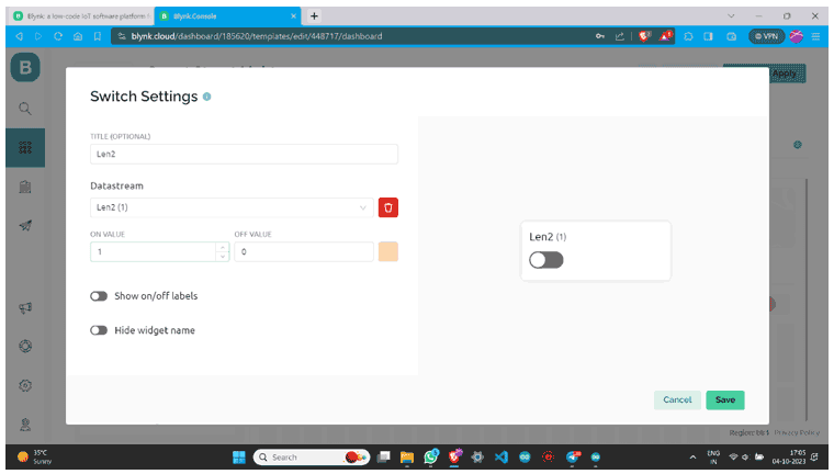 步驟9:進(jìn)入“Web Dashboard”并添加Switch小部件。