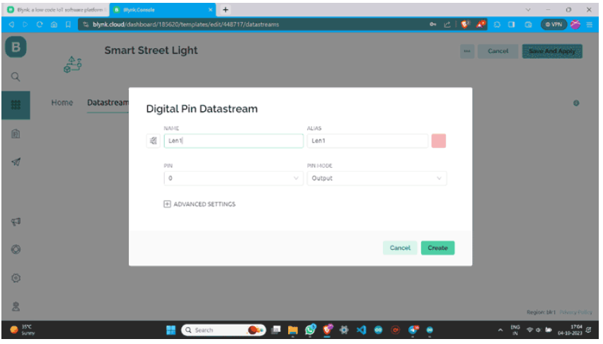 步驟7:一旦在blynk網(wǎng)站上創(chuàng)建了一個(gè)數(shù)據(jù)流,它將看起來像下面這樣