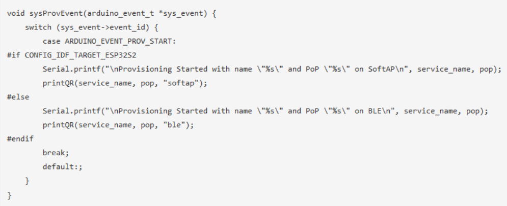 sysProvEvent()函數(shù)獲取Wi-Fi憑據(jù),并將ESP32連接到路由器,用于系統(tǒng)發(fā)放事件。