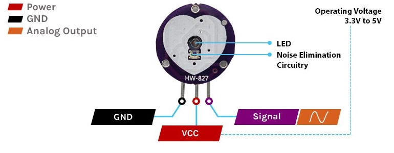 信號引腳:該引腳用于將脈沖速率數(shù)據(jù)以模擬形式傳輸?shù)絅odeMCU板。