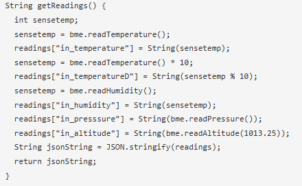 讓我們看一下代碼是如何從傳感器讀取數(shù)據(jù),從API獲取天氣數(shù)據(jù),并將其發(fā)送到web服務器的。