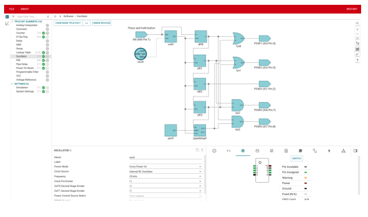 德州儀器 PLD 采用易于使用的圖形界面來(lái)配置所需的電路,從而簡(jiǎn)化了編程過(guò)程。設(shè)計(jì)邏輯電路后,您可以臨時(shí)配置器件以用于評(píng)估,或者永久編程該器件以在最終產(chǎn)品中使用。德州儀器開(kāi)發(fā)了 InterConnect Studio,旨在為設(shè)計(jì)人員提供便利,讓設(shè)計(jì)人員無(wú)需編碼經(jīng)驗(yàn)即可配置德州儀器 PLD。InterConnect Studio 可幫助您在幾分鐘內(nèi)完成開(kāi)發(fā)和仿真,并在幾秒內(nèi)完成原型設(shè)計(jì)。圖 2 顯示了使用 InterConnect Studio 進(jìn)行電源時(shí)序控制應(yīng)用的電路設(shè)計(jì)。