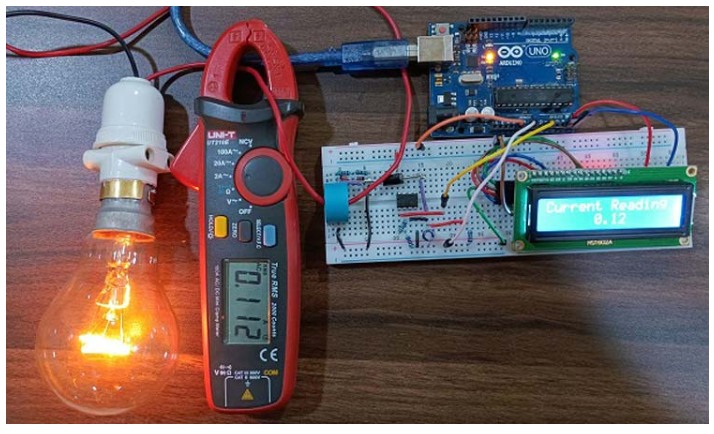 測(cè)量較小的電流值(小于0.2 a)顯示測(cè)量電流值在小數(shù)點(diǎn)后第二位的波動(dòng)。這是因?yàn)?a href="/tags/交流電流" target="_blank">交流電流的值很小,但如果我們測(cè)量的電流值很大(超過(guò)0.5A),則不會(huì)出現(xiàn)波動(dòng)。在這里,我們使用金屬膜電阻,但我們可以得到更準(zhǔn)確的結(jié)果,使用精密金屬膜電阻。