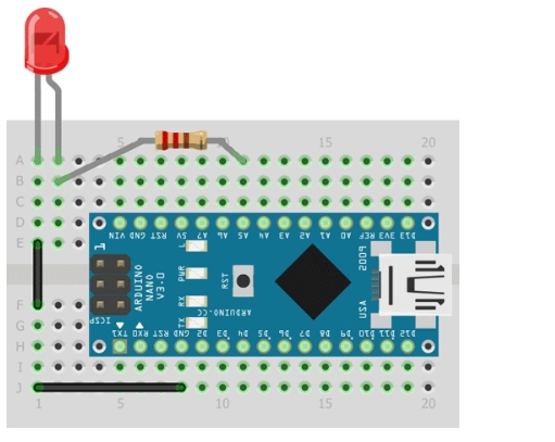 設(shè)置的完整連接圖如下所示。您只需要按照圖中所示進(jìn)行連接,就可以看到LED閃爍。