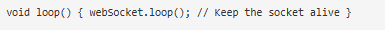 接下來(lái),我們有了loop()函數(shù)。在循環(huán)函數(shù)中,我們通過(guò)調(diào)用WebSocket.loop()函數(shù)來(lái)保持WebSocket的活動(dòng)狀態(tài)。