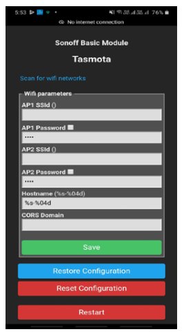 一旦完成Tasmota固件的閃爍,斷開GPIO-0引腳,然后斷開ESP-01電源,并重新連接。當(dāng)Tasmota固件啟動時,它提供了一個無線接入點(diǎn),方便Wi-Fi配置。它的名稱類似于“tasmota_XXXXXX-####”。