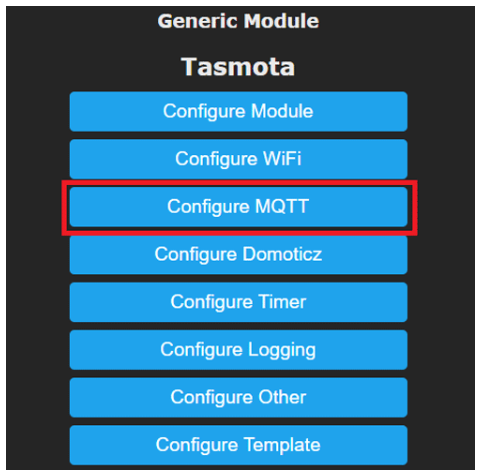 現(xiàn)在,導(dǎo)航到Tasmota Web UI,轉(zhuǎn)到“Configuration”,然后轉(zhuǎn)到“Configure MQTT”。