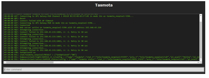 現(xiàn)在,要在Tasmota設(shè)備上打開發(fā)現(xiàn)模式,請?jiān)赥asmota控制臺中輸入以下命令并按“enter”。