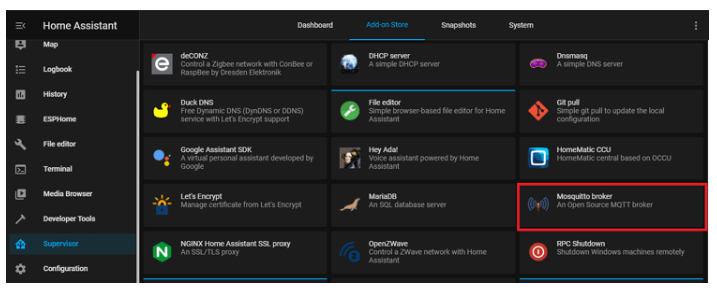 我們將在Tasmota和Home Assistant上配置MQTT,以便Tasmota設(shè)備將在Home Assistant中自動發(fā)現(xiàn)。因此,第一步將是在Home Assistant上安裝MQTT附加組件。如果您已經(jīng)在Home Assistant上安裝了MQTT,則跳過此步驟。