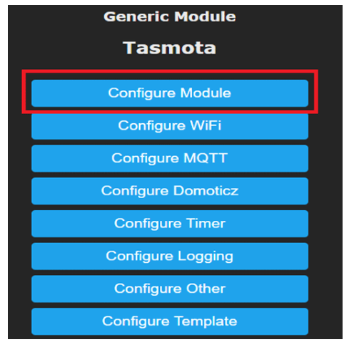 為了用Tasmota控制LED,我們需要配置模塊。為此,點(diǎn)擊“配置”,然后點(diǎn)擊“配置模塊”