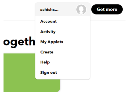 獲得私鑰后,現(xiàn)在使用Webhooks和Email服務(wù)創(chuàng)建一個(gè)applet。要?jiǎng)?chuàng)建applet,請(qǐng)單擊您的個(gè)人資料,然后單擊“創(chuàng)建”。