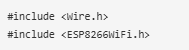 像往常一樣,通過(guò)包含所有必需的庫(kù)來(lái)開(kāi)始代碼。Wire.h庫(kù)允許您與I2C / TWI設(shè)備通信,而ESP8266.h庫(kù)提供了NodeMCU特定的Wi-Fi例程,我們正在調(diào)用這些例程連接到網(wǎng)絡(luò)。