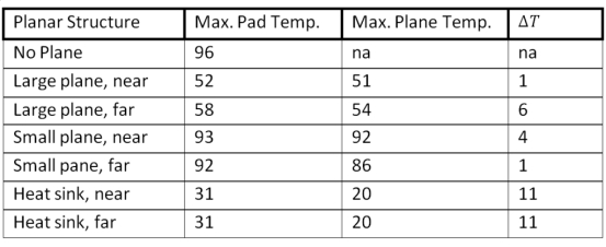表 1平面的存在會降低焊盤溫度,但會升高平面溫度。