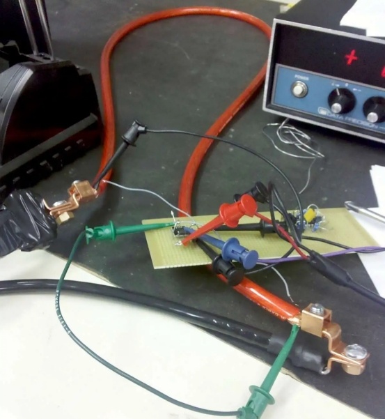 我們的設(shè)置使用了四英尺的 JSC 1666 AWG 4 電纜。絕緣體沿其長(zhǎng)度被切開,并將 34 號(hào)漆包線插入絕緣體下方。電路中使用了NCS333運(yùn)算放大器。由于運(yùn)算放大器的共模電壓等于其電源軌,因此它必須具有軌到軌輸入能力(或使用更高的電源)。此外,它應(yīng)該是一個(gè)零漂移(斬波)放大器,因?yàn)闃?biāo)準(zhǔn)軌到軌運(yùn)算放大器在正軌附近的性能通常較差。