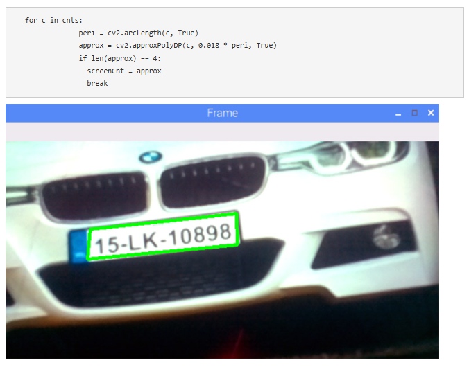 所以在本教程中,我們將建立一個實時車牌識別系統(tǒng)使用樹莓派和派相機。該系統(tǒng)采用OpenCV和光學(xué)字符識別技術(shù)實現(xiàn)車牌的自動識別和讀取。Pi相機模塊連續(xù)捕獲幀,當按下鍵盤上的一個鍵時,它將最后一幀保存為新圖像。然后利用OpenCV中的輪廓函數(shù)對車牌進行檢測。最后,樹莓派裁剪出特定區(qū)域,并執(zhí)行光學(xué)字符識別來讀取車牌號碼。