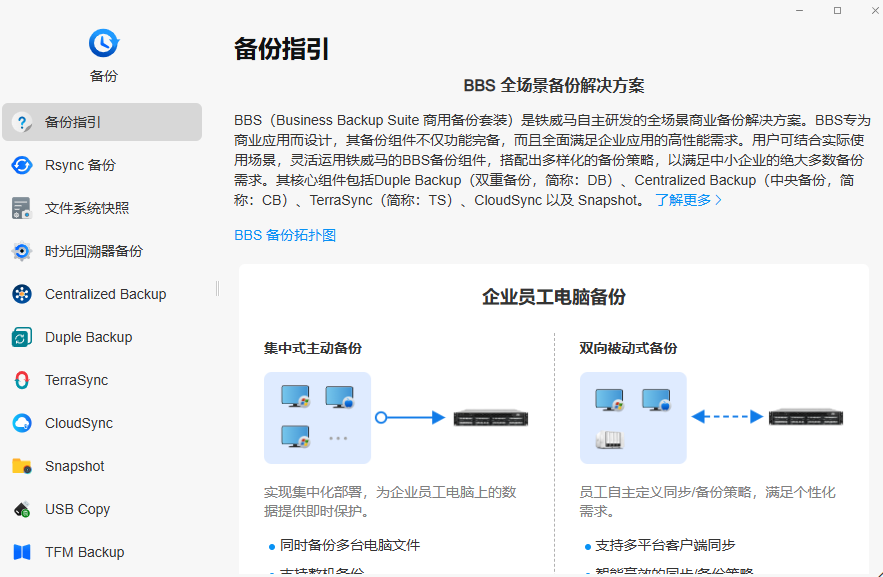 數(shù)據(jù)安全是企業(yè)選擇NAS產(chǎn)品時(shí)考慮的關(guān)鍵因素之一。鐵威馬F6-424 MAX內(nèi)置了多重安全防護(hù)機(jī)制,包括但不限于用戶權(quán)限管理、數(shù)據(jù)加密傳輸以及自動(dòng)備份功能等,有效防止數(shù)據(jù)泄露和丟失的風(fēng)險(xiǎn)。同時(shí)鐵威馬還提供了BBS全場(chǎng)景備份解決方案,多種安全備份工具如中央備份、雙重備份等,能夠在遭遇意外情況時(shí)迅速恢復(fù)業(yè)務(wù),確保企業(yè)運(yùn)營的連續(xù)性。