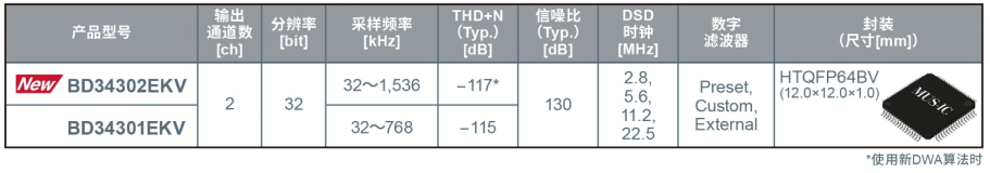 全球知名半導(dǎo)體制造商ROHM(總部位于日本京都市)開發(fā)出一款屬于適合播放高分辨率音源*1的MUS-IC?系列旗艦機型32位D/A轉(zhuǎn)換器IC(以下簡稱“DAC芯片”※)“BD34302EKV”,并推出其評估板“BD34302EKV-EVK-001”,現(xiàn)均已開始銷售。