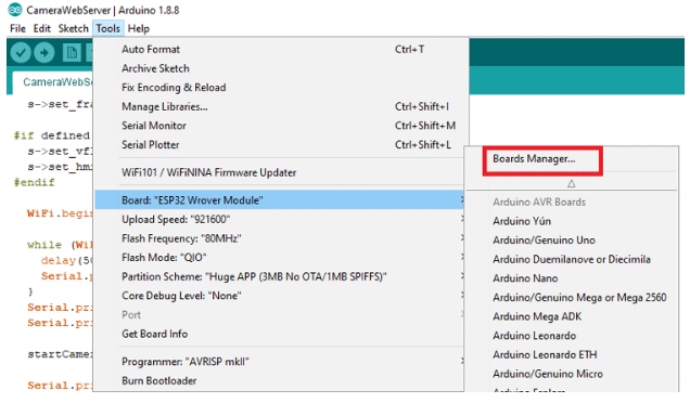 我們將使用Arduino IDE對(duì)ESP32-CAM進(jìn)行編程。為此,我們必須在Arduino IDE上安裝ESP32附加組件。