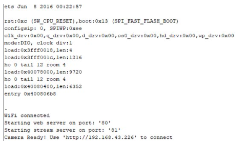 上傳代碼后,斷開(kāi)IO0和GND引腳。然后打開(kāi)串口監(jiān)視器,將波特率修改為115200。在按下ESP32復(fù)位按鈕后,它將在串行監(jiān)視器上打印ESP IP地址和端口號(hào)。