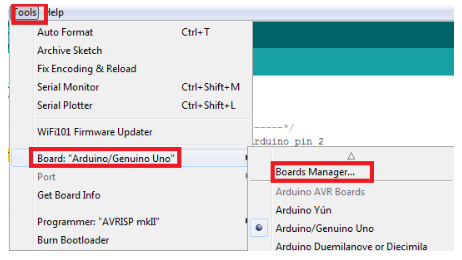 現(xiàn)在轉(zhuǎn)到Tools > Board > Boards Manager。