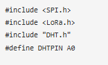 通過(guò)添加所需的庫(kù)和初始化引腳來(lái)啟動(dòng)程序。在此代碼中,SPI和LoRa庫(kù)用于LoRa模塊。DHT11傳感器模塊連接Arduino的A0引腳。您可以從這里下載Lora庫(kù)