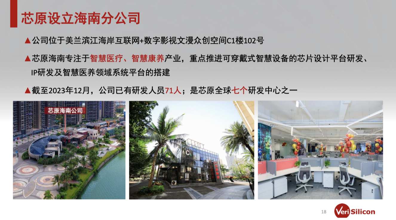 作為全球領(lǐng)先的IP供應(yīng)商、中國半導(dǎo)體IP第一股,芯原提供了一站式芯片設(shè)計服務(wù),并且在海南設(shè)立了分公司,助力海南健康產(chǎn)業(yè)發(fā)展。芯原海南分公司位于美蘭濱江海岸互聯(lián)網(wǎng)+數(shù)字影視文漫眾創(chuàng)空間,專注于智慧醫(yī)療和智慧康養(yǎng)產(chǎn)業(yè),重點推進可穿戴式智慧設(shè)備的芯片設(shè)計平臺研發(fā)、IP研發(fā)以及智慧醫(yī)療康養(yǎng)領(lǐng)域系統(tǒng)平臺的搭建。截至2023年12月,公司研發(fā)人員已達71人,是芯原全球七個研發(fā)中心之一。芯原海口本地員工73%畢業(yè)于海南大學(xué),非海南大學(xué)畢業(yè)員工籍貫均為海南籍,人才的本土化一直是芯原海南人才戰(zhàn)略,并持續(xù)致力于海南集成電路產(chǎn)業(yè)人才的培養(yǎng)。