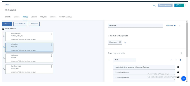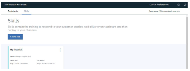 我們已經(jīng)完成了為IBM聊天機器人設置服務的工作。現(xiàn)在,我們需要創(chuàng)造技能并用可能的答案訓練它。