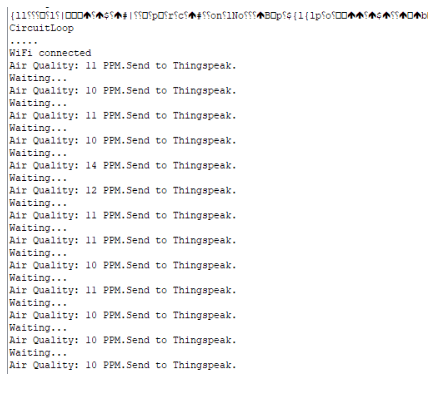 在void循環(huán)內(nèi)部,將測量函數(shù)空氣質(zhì)量,并使用. getppm()函數(shù)將值更改為PPM。之后,這些值將被發(fā)布到幾個ThingSpeak通道。