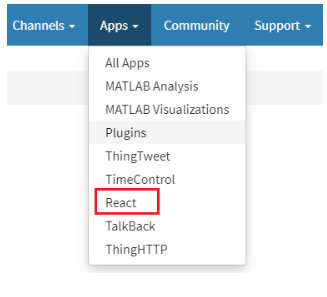 回到ThingSpeak頻道,然后點擊Apps > React > New React。