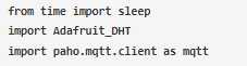 首先,導入時間、DHT傳感器和MQTT客戶機所需的所有庫