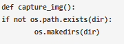 6. 現(xiàn)在,創(chuàng)建一個(gè)捕獲照片的函數(shù)。在這個(gè)函數(shù)中,我們必須檢查目錄是否已經(jīng)存在。如果沒有,則創(chuàng)建目錄。
