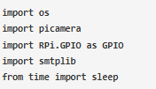 1. 在樹莓派中打開您最喜歡的文本編輯器,并導(dǎo)入picamera, Rpi gpio, SMTP, time的所有重要庫。