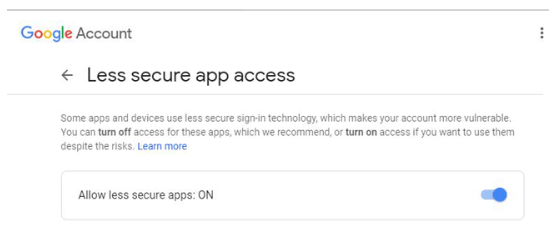 3. 在安全選項(xiàng)卡下,你會發(fā)現(xiàn)不太安全的應(yīng)用程序訪問。通過點(diǎn)擊“允許不太安全的應(yīng)用程序”來打開它。