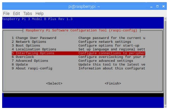 1. 如果你正在使用picam,那么你必須從raspi-config中啟用攝像頭接口。執(zhí)行命令sudo raspi-config,進(jìn)入“接口選項(xiàng)”。