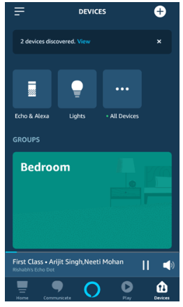 現(xiàn)在,試著說Alexa,發(fā)現(xiàn)設(shè)備。Alexa會回復(fù)說開始發(fā)現(xiàn),我找到了兩個設(shè)備,試著說“Alexa,打開臥室燈”。
