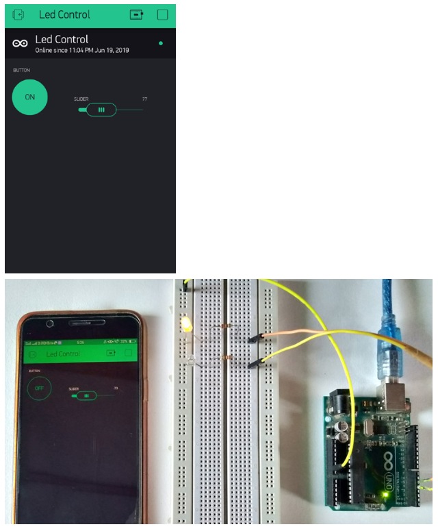 同樣,移動(dòng)滑塊來改變LED的亮度。