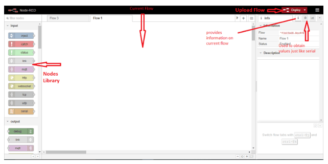 現(xiàn)在可以部署流了。我們可以使用deploy按鈕在Node-RED上部署流。