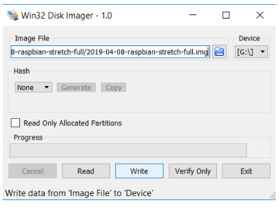 Raspbian有三種變體,我們使用的是Raspbian Stretch桌面版。下載Zip文件并解壓縮到一個(gè)文件夾。打開(kāi)文件夾,您將看到一個(gè)包含操作系統(tǒng)的映像文件。我們得把這個(gè)文件寫入SD卡。為此,我們需要能夠?qū)⒉僮飨到y(tǒng)寫入SD卡的軟件。這里我們使用WIN32DiskImager將操作系統(tǒng)寫入SD卡。