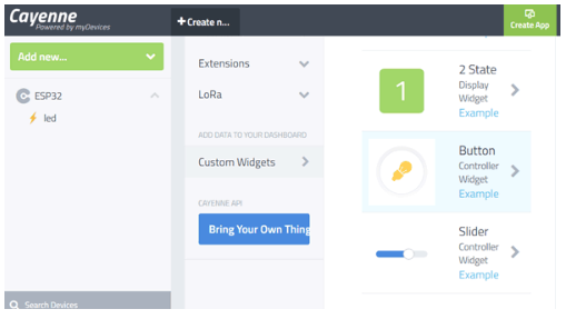 現(xiàn)在,點擊“Add Widget”,按鈕將被創(chuàng)建來控制我們的LED。