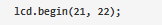 在setup Function中,通過定義用于I2C通信的SDA和DCL引腳來初始化I2C LCD模塊,(SDA = GPIO21, SCL = GPIO22)