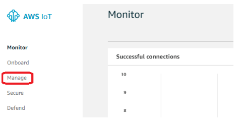 上傳代碼后,在瀏覽器中打開AWS控制臺(tái)并進(jìn)入服務(wù),然后再次進(jìn)入IoT Core服務(wù),在此單擊此菜單左側(cè)的“管理”。