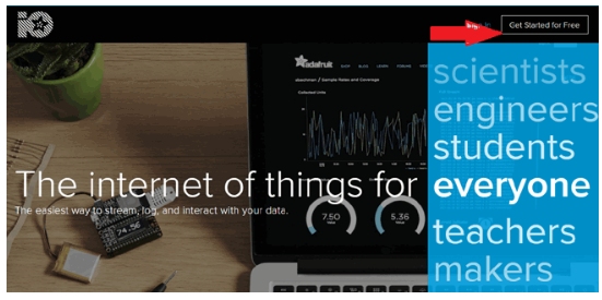 1. 對于Adafruit IO設(shè)置,您需要做的第一件事是注冊Adafruit IO。要注冊,請?jiān)L問Adafruit IO的網(wǎng)站,點(diǎn)擊屏幕右上方的“免費(fèi)開始”。