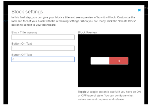 8. 將塊命名為任何您喜歡的名稱,并將On Text設(shè)置為1,Off Text設(shè)置為0。確保選擇了Digital提要作為切換的數(shù)據(jù)源。