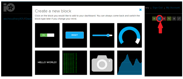 7. 接下來,要添加一個(gè)新的Toggle Block,您需要?jiǎng)?chuàng)建一個(gè)儀表板。創(chuàng)建儀表板與創(chuàng)建Feed相同。所以請遵循相同的步驟?,F(xiàn)在要添加塊,請單擊屏幕右上角的“加號”,然后單擊第一個(gè)選項(xiàng)。