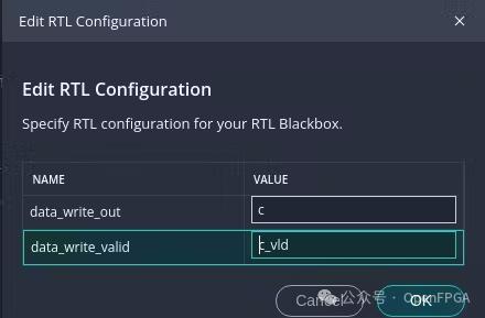 選擇端口方向并填寫RTL組配置(verilog模塊中的端口名稱)。