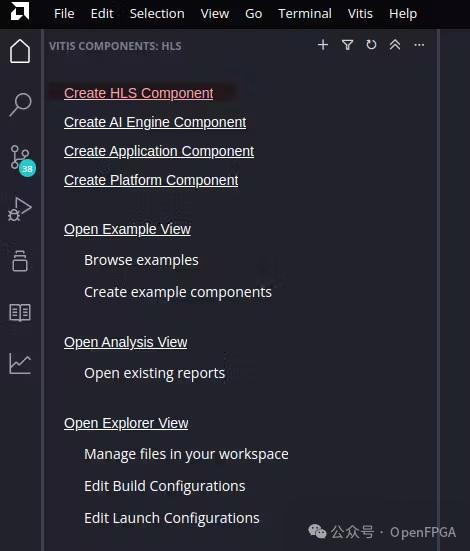啟動 Vitis,選擇工作區(qū)并點(diǎn)擊“創(chuàng)建 HLS 組件”。