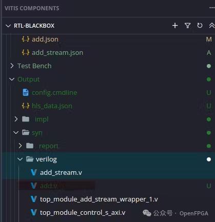 右鍵單擊 hls_component 并單擊“創(chuàng)建 RTL blackbox”,將生成 JSON 文件,描述 verilog 模塊與其 C 函數(shù)之間的連接。